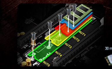 | 与其它M.2 相比, 超级M.2 直接从CPU支持PCIe Gen3 x4频宽,延迟率更低,速度更快。 |