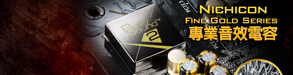 | 天籟美聲再進化!華擎科技大手筆採用 Nichicon Fine Gold 系列音效專用電容,保證滿足最挑剔的音響發燒友,提供您更純淨自然的超優質音效饗宴。 |