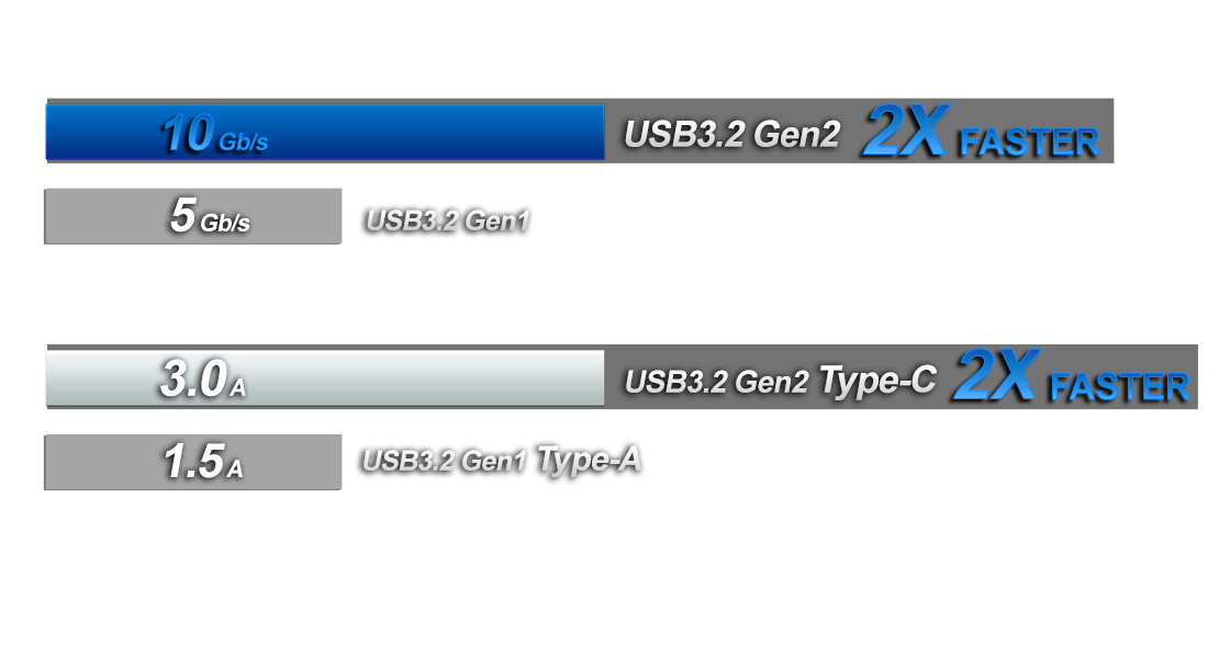This motherboard has a pair of onboard Type-A and Type-C USB 3.2 Gen2 ports built on the rear i/o for supporting next generation USB 3.2 Gen2 devices and to deliver up to 10 Gbps data transfer rates.