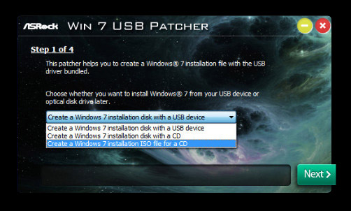 If you don't have an optical disc drive and wish to install Windows 7 with a USB drive, please find another computer and follow the instructions below to use "Win 7 USB Patcher" (Located in the support CD or ASRock's website).