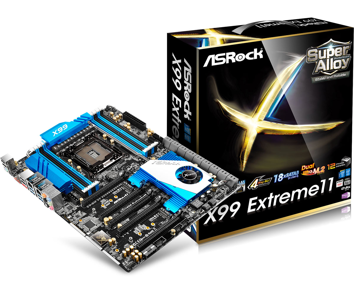 ASRock X99 Extreme11 là sản phẩm mũi nhọn của Series ASRock Super Alloy. Nó đi kèm với các CPU Intel® Core™ i7 và Xeon 18 lõi (LGA 2011-3). Bên cạnh những thông số ấn tượng nói trên, bo mạch chủ này cũng được trang bị tản nhiệt bằng hợp kim nhôm XXL (XXL Aluminum Alloy Heatsinks), trang bị thiết kế 12 pha điện, hệ thống tụ có tuổi thọ 12,000h (12K Platinum Caps Nichicon), cuộn cảm lọc nguồn 60A (Premium 60A Power Choke), cuộn cảm cho bộ nhớ trong (Premium Memory Alloy Choke), Ultra Dual-N MOSFET (UDN). Các giải pháp VRM hiệu quả nhất để tạo ra được hiệu suất mạnh nhất trong khi vẫn duy trì được mức tiêu thụ điện năng thấp và nhiệt độ thấp. Các tính năng khác bao gồm Intel® Gigabit LAN kép với hỗ trợ Teaming, giải pháp âm thanh Purity Sound 2 cùng với các tụ âm thanh Nichicon Fine Gold Series. Và làm sao có thể quên được bộ nhớ DDR4 được nâng cấp trên các hệ thống X99? Bo mạch chủ này đi kèm với 8 bộ nhớ khe cắm hỗ trợ DDR4 ECC 4 kênh và bộ nhớ UDIMM / RDIMM lên đến 3400+(OC).