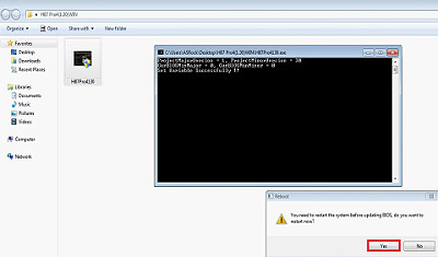- 出现提醒刷新 BIOS 需重启的对话框,请选择 "Yes"。